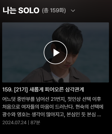 나는솔로 159회는 새롭게 피어오른 삼각관계로 재미를 더해가고 있습니다. 너무나도 몰입되는 나는 솔로 다시보기를 원하시는 분들이 많으셔서 정보 남겨드려요.